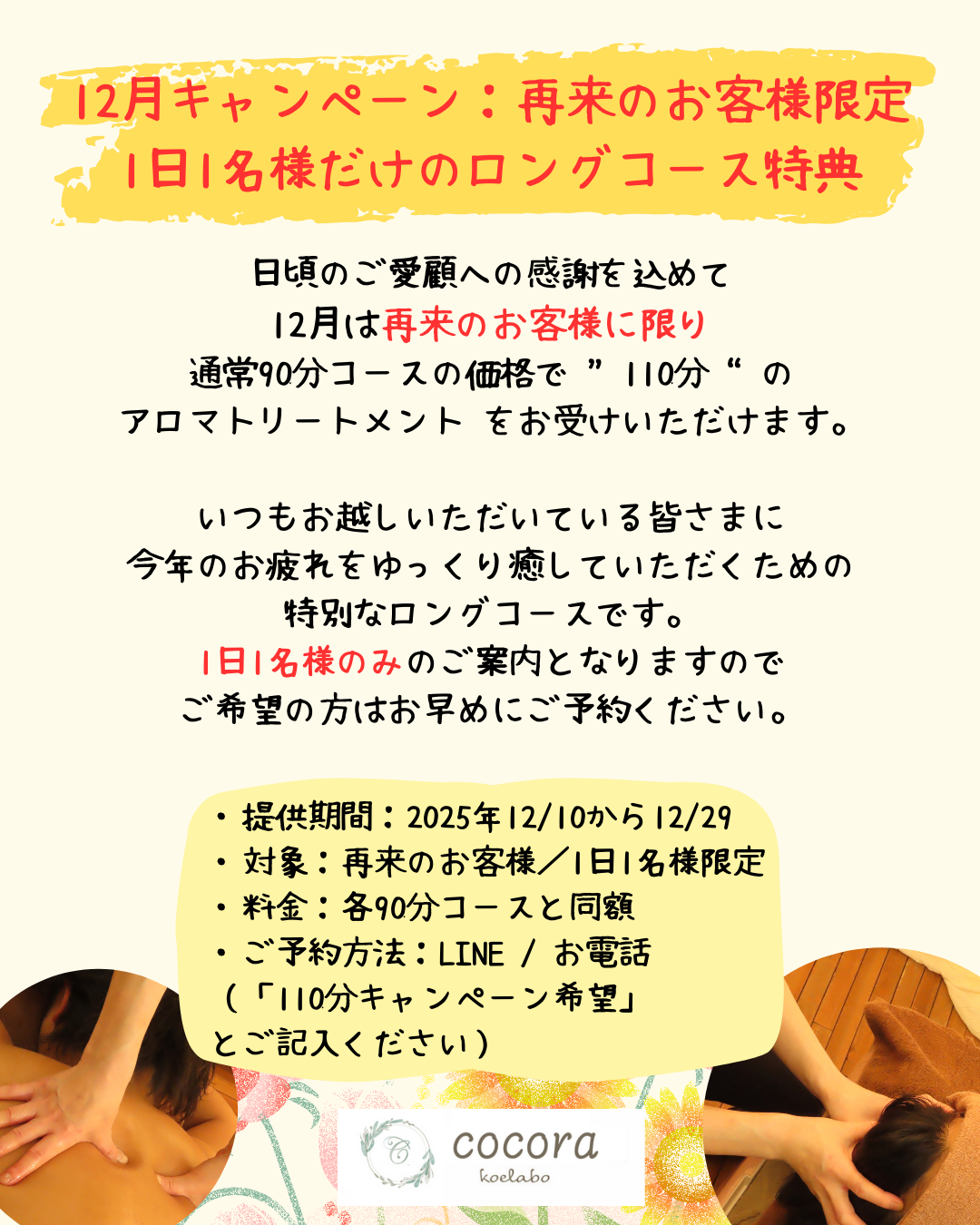 ・ご予約方法:LINE / お電話(「110分キャンペーン希望」とご記入ください)